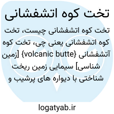 {volcanic butte} [زمین شناسی] سیمایی زمین ریخت شناختی با دیواره های پرشیب و مسطح در بخش بالایی که ارتفاع آنها بیش از پهنای آنهاست