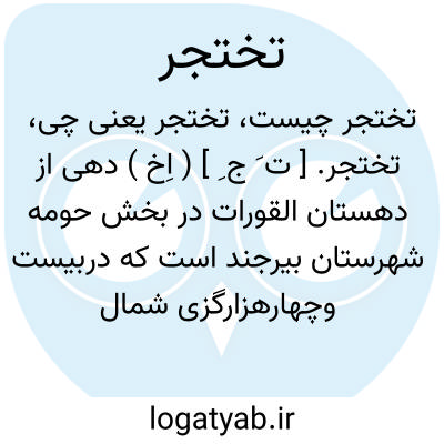 تختجر. [ ت َ ج ِ ] ( اِخ ) دهی از دهستان القورات در بخش حومه شهرستان بیرجند است که دربیست وچهارهزارگزی شمال خاوری بیرجند قرار دارد. دامنه ای معتدل است و 56 تن سکنه دارد. آب آن از قنات و محصول آن غلات و میوجات و شغل اهالی آنجا زراعت است وراه مالرو دارد. ( از فرهنگ جغرافیایی ایران ج 9 ).