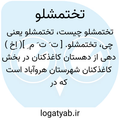 تختمشلو. [ ت َ ت َ م ِ ]( اِخ ) دهی از دهستان کاغذکنان در بخش کاغذکنان شهرستان هروآباد است که در 5500گزی شمال آغ کند و 20500گزی شوسه میانه - زنجان قرار دارد. کوهستانی و گرمسیراست و 352 تن سکنه دارد. آب آن از سه رشته چشمه و محصول آن غلات و حبوبات و میوه است و شغل اهالی زراعت و گله داری و صنایع دستی آنان جاجیم و گلیم بافی است.راه مالرو دارد. ( از فرهنگ جغرافیایی ایران ج 4 ).