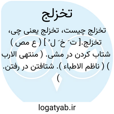 لغت نامه دهخدا تخزلج.[ ت َ خ َ ل ُ ] ( ع مص ) شتاب کردن در مشی. ( منتهی الارب ) ( ناظم الاطباء ). شتافتن در رفتن. ( اقرب الموارد ).