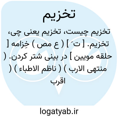 تخزیم. [ ت َ ] ( ع مص ) خِزامه [ حلقه مویین ] در بینی شتر کردن. ( منتهی الارب ) ( ناظم الاطباء ) ( اقرب الموارد ) ( المنجد ).