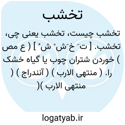 تخشب. [ ت َ خ َش ْ ش ُ ] ( ع مص ) خوردن شتران چوب یا گیاه خشک را. ( منتهی الارب ) ( آنندراج ) ( منتهی الارب )( ناظم الاطباء ) ( اقرب الموارد ) ( المنجد ): تتخشب الابل ُ عیدان َالشجر؛ ای تتناول اغصانه. ( اقرب الموارد ).