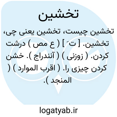 تخشین. [ ت َ ] ( ع مص ) درشت کردن. ( زوزنی ) ( آنندراج ). خشن کردن چیزی را. ( اقرب الموارد ) ( المنجد ). || بخشم آوردن و کینه ور گردانیدن کسی را. ( منتهی الارب ) ( ناظم الاطباء ). پر کردن سینه کسی را از خشم و کینه و برافروختن او از خشم. ( از اقرب الموارد ) ( از المنجد ).