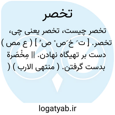 تخصر. [ ت َ خ َص ْ ص ُ ] ( ع مص ) دست بر تهیگاه نهادن. || مِخْصَرة بدست گرفتن. ( منتهی الارب ) ( ناظم الاطباء ) ( از اقرب الموارد ) ( از المنجد ). فی الحدیث: المتخصرون یوم القیامة علی وجوههم النور؛ ای المصلون باللیل، از آن رو که چون خفته شوند دست های خود بر تهیگاه خویش نهند. ( منتهی الارب ) ( ناظم الاطباء ).