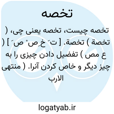 ( تخصة ) تخصة. [ ت َ خ ِص ْ ص َ ] ( ع مص ) تفضیل دادن چیزی را به چیز دیگر و خاص کردن آنرا. ( منتهی الارب ) ( ناظم الاطباء ) ( اقرب الموارد ) ( المنجد ).