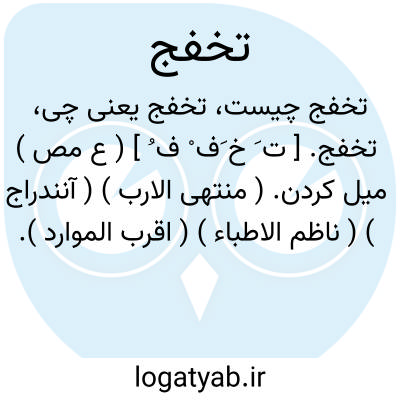 لغت نامه دهخدا تخفج. [ ت َ خ َف ْ ف ُ ] ( ع مص ) میل کردن. ( منتهی الارب ) ( آنندراج ) ( ناظم الاطباء ) ( اقرب الموارد ).