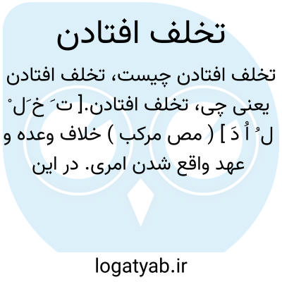 تخلف افتادن.[ ت َ خ َل ْ ل ُ اُ دَ ] ( مص مرکب ) خلاف وعده و عهد واقع شدن امری. در این بیت، خطا بودن، تفسیر بخطا کردن،تعبیر نادرست و مانند آنها معنی میدهد: بود این نکته پر روشن که در باب جناب تو تخلف تا ابد افتاده در اقوال انسانی.علی خراسانی ( از آنندراج ).