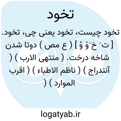 تخود. [ ت َ خ َوْ وُ ] ( ع مص ) دوتا شدن شاخه درخت. ( منتهی الارب ) ( آنندراج ) ( ناظم الاطباء ) ( اقرب الموارد ) ( المنجد ).