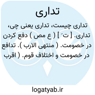 تداری. [ ت َ ] ( ع مص ) دفع کردن در خصومت. ( منتهی الارب ). تدافع در خصومت و اختلاف قوم. ( اقرب الموارد ). || حفاظت نمودن از خود. ( ناظم الاطباء ).