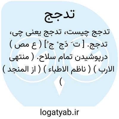 تدجج. [ ت َ دَج ْ ج ُ] ( ع مص ) درپوشیدن تمام سلاح. ( منتهی الارب ) ( ناظم الاطباء ) ( از المنجد ) ( از اقرب الموارد ). || ابرناک گردیدن آسمان. ( منتهی الارب ) ( ناظم الاطباء ).