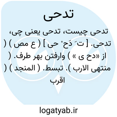 تدحی. [ ت َ دَح ْ حی ] ( ع مص ) ( از «دح ی » ) وارفتن بهر طرف. ( منتهی الارب ). تبسط. ( المنجد ) ( اقرب الموارد ) ( متن اللغه ) ( تاج العروس ). یقال: نام فلان فتدحی؛ ای اضطجع فی سعة من الارض. ( تاج العروس ).