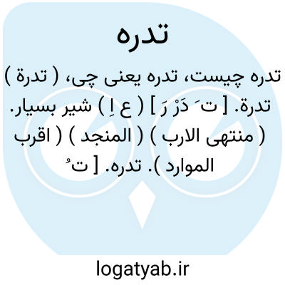 تدره. [ ت ُ رَه ْ ] ( ع اِمص ) دفعو مدافعه. ( المنجد ) ( اقرب الموارد ). یقال: هو ذو تدره القوم؛ ای الدافع عنهم. ( اقرب الموارد ). هو ذوتدره؛ اذا کان هجاماً علی اعدائه من حیث لایشعرون. ( المنجد ). هو ذوتدرههم؛ یعنی او راننده و دورکننده است از آنها و حمایت کننده. ( منتهی الارب ) ( ناظم الاطباء ).