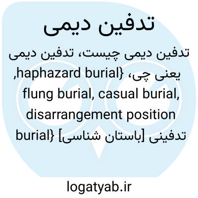{haphazard burial, flung burial, casual burial, disarrangement position burial} [باستان شناسی] تدفینی که در آن جسد بدون هیچ نظم و ترتیب مشخصی در چالۀ گور رها شده باشد