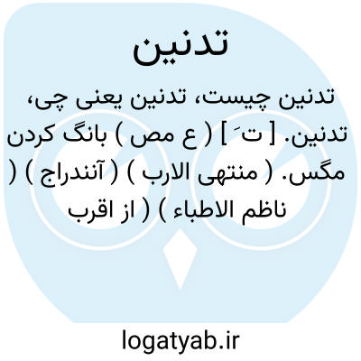 لغت نامه دهخدا تدنین. [ ت َ ] ( ع مص ) بانگ کردن مگس. ( منتهی الارب ) ( آنندراج ) ( ناظم الاطباء ) ( از اقرب الموارد ) ( از المنجد ).