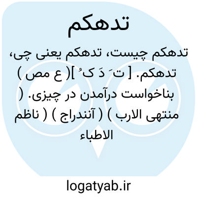 تدهکم. [ ت َ دَ ک ُ ]( ع مص ) بناخواست درآمدن در چیزی. ( منتهی الارب ) ( آنندراج ) ( ناظم الاطباء ). || در کار سخت درآمدن. ( منتهی الارب ) ( آنندراج ) ( ناظم الاطباء ) ( اقرب الموارد ). || خلاف نمودن و گردنکشی نمودن بر کسی. ( منتهی الارب ) ( ناظم الاطباء ) ( از اقرب الموارد ).