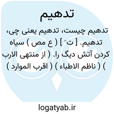 لغت نامه دهخدا تدهیم. [ ت َ ] ( ع مص ) سیاه کردن آتش دیگ را. ( از منتهی الارب ) ( ناظم الاطباء ) ( اقرب الموارد ) ( المنجد ).