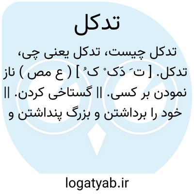 تدکل. [ ت َ دَک ْ ک ُ ] ( ع مص ) ناز نمودن بر کسی. || گستاخی کردن. || خود را برداشتن و بزرگ پنداشتن و عزت گرفتن. ( منتهی الارب ) ( آنندراج ) ( ناظم الاطباء ) ( از المنجد ) ( از اقرب الموارد ). تکبر کردن. ( منتهی الارب ) ( آنندراج ) ( ناظم الاطباء ). || درنگی نمودن. ( منتهی الارب ) ( آنندراج ) ( ناظم الاطباء ) ( المنجد ) ( اقرب الموارد ).