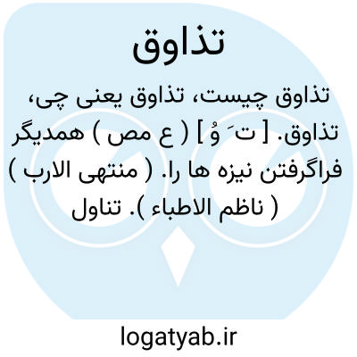 تذاوق. [ ت َ وُ ] ( ع مص ) همدیگر فراگرفتن نیزه ها را. ( منتهی الارب ) ( ناظم الاطباء ). تناول نیزه ها. ( المنجد ) ( از اقرب الموارد ). || چشیدن چیزی. ( المنجد ). چشیدن متاع را. ( اقرب الموارد ).