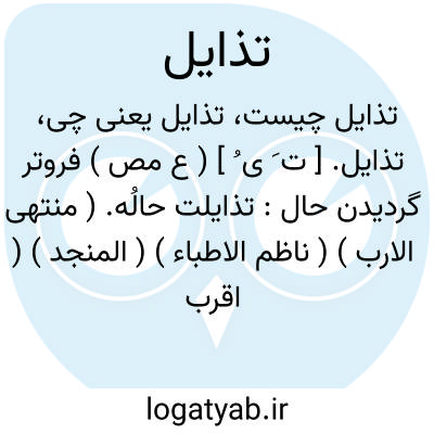 تذایل. [ ت َ ی ُ ] ( ع مص ) فروتر گردیدن حال: تذایلت حالُه. ( منتهی الارب ) ( ناظم الاطباء ) ( المنجد ) ( اقرب الموارد ).