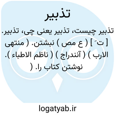 لغت نامه دهخدا تذبیر. [ ت َ ] ( ع مص ) نبشتن. ( منتهی الارب ) ( آنندراج ) ( ناظم الاطباء ). نوشتن کتاب را. ( المنجد ) ( اقرب الموارد ).