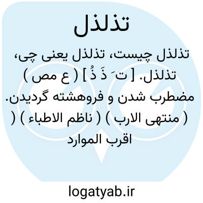 تذلذل. [ ت َ ذَ ذُ ] ( ع مص ) مضطرب شدن و فروهشته گردیدن. ( منتهی الارب ) ( ناظم الاطباء ) ( اقرب الموارد )( المنجد ) ( آنندراج ). جنبیدن چیزی که آویخته باشد. ( آنندراج ). || فروتنی نمودن. || زاری کردن. ( منتهی الارب ) ( آنندراج ) ( ناظم الاطباء ).