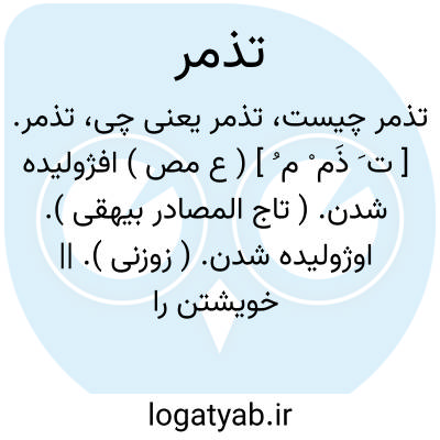 تذمر. [ ت َ ذَم ْ م ُ ] ( ع مص ) افژولیده شدن. ( تاج المصادر بیهقی ). اوژولیده شدن. ( زوزنی ). || خویشتن را ملامت کردن. ( تاج المصادر بیهقی ). نکوهش کردن نفس خود را بر غضب یا بر چیزی که فوت کرد. || دیگرگون و ناآشنا گردیدن. ( منتهی الارب ) ( آنندراج ) ( ناظم الاطباء ) ( اقرب الموارد ) ( المنجد ). || خشم گرفتن. ( منتهی الارب ) ( آنندراج ) ( ناظم الاطباء ). تغضب. ( اقرب الموارد ) ( المنجد ): کان یتذمر علی ربه؛ یعنی دلیری میکرد بر وی و برمیداشت آواز خود را در عتاب او. ( اقرب الموارد ) ( المنجد ). || ترسانیدن و وعده بد کردن. ( منتهی الارب ) ( آنندراج )( ناظم الاطباء ) ( از اقرب الموارد ). تهدید. ( المنجد ). || برانگیختن بر قتال. ( اقرب الموارد ).