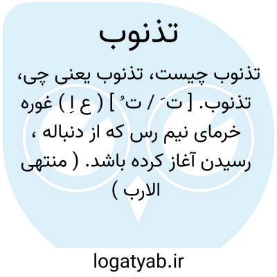 تذنوب. [ ت َ / ت ُ ] ( ع اِ ) غوره خرمای نیم رس که از دنباله، رسیدن آغاز کرده باشد. ( منتهی الارب ) ( آنندراج ) ( ناظم الاطباء ) ( اقرب الموارد ).