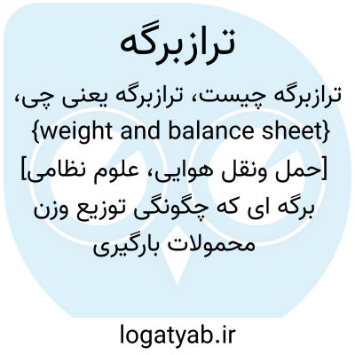 {weight and balance sheet} [حمل ونقل هوایی، علوم نظامی] برگه ای که چگونگی توزیع وزن محمولات بارگیری شدۀ هواپیما در آن ثبت می شود و نشان دهندۀ گرانیگاه هواپیما در هنگام فرود و پرواز است