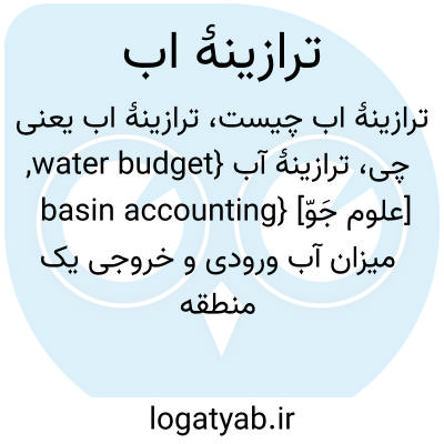 {water budget, basin accounting} [علوم جَوّ] میزان آب ورودی و خروجی یک منطقه شامل بارندگی و تبخیر و رَواناب و جذب خاک متـ. ترازینۀ آب شناختی hydrologic budget, hydrologic accounting توازن آب water balance توازن آب شناختی hydrologic balance
