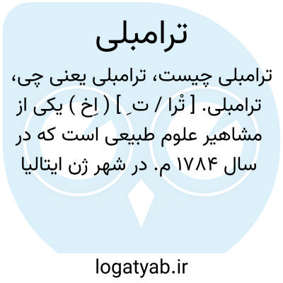 ترامبلی. [ تْرا / ت ِ ] ( اِخ ) یکی از مشاهیر علوم طبیعی است که در سال 1784 م. در شهر ژن ایتالیا درگذشت. وی در تاریخ طبیعی اثر چندی تدوین کرد و در این فن به کشفیات متعددی موفق گردید. ( از قاموس الاعلام ترکی ).