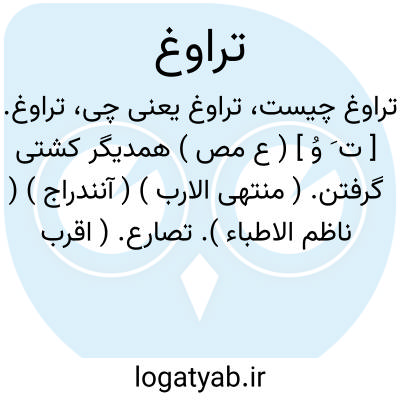 لغت نامه دهخدا تراوغ. [ ت َ وُ ] ( ع مص ) همدیگر کشتی گرفتن. ( منتهی الارب ) ( آنندراج ) ( ناظم الاطباء ). تصارع. ( اقرب الموارد ) ( المنجد ). || دستان آوردن. ( منتهی الارب ) ( آنندراج ) ( ناظم الاطباء ). تخادع. ( المنجد ).