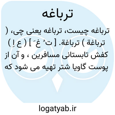 ( ترباغة ) ترباغة. [ ت ُ غ َ ] ( ع اِ ) کفش تابستانی مسافرین، و آن از پوست گاویا شتر تهیه می شود که بوسیله چهار یا پنج بند بر پا گره می خورد و استوار میگردد. ( از دزی ج 1 ص 143 ).