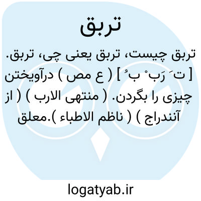 تربق. [ ت َ رَب ْ ب ُ ] ( ع مص ) درآویختن چیزی را بگردن. ( منتهی الارب ) ( از آنندراج ) ( ناظم الاطباء ).معلق ساختن چیزی. ( از اقرب الموارد ) ( از المنجد ).