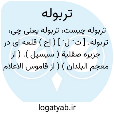 لغت نامه دهخدا تربوله. [ ت َ ل َ ] ( اِخ ) قلعه ای در جزیره صقلیة ( سیسیل ). ( از معجم البلدان ) ( از قاموس الاعلام ترکی ).