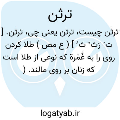 ترثن. [ ت َ رَث ْ ث ُ ] ( ع مص ) طلا کردن روی را به غُمْرة که نوعی از طلا است که زنان بر روی مالند. ( منتهی الارب ) ( آنندراج ) ( ناظم الاطباء ). طلا کردن زن روی را به غمره. ( از لسان العرب ).