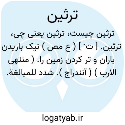 ترثین. [ ت َ ] ( ع مص ) نیک باریدن باران و تر کردن زمین را. ( منتهی الارب ) ( آنندراج ). شدد للمبالغة. ( منتهی الارب ).