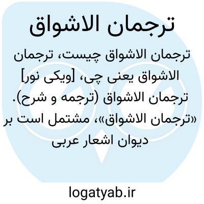 [ویکی نور] ترجمان الاشواق (ترجمه و شرح). «ترجمان الاشواق»، مشتمل است بر دیوان اشعار عربی محی الدین عربی، در زمینه عرفان ادبی و نظری و نیز حاوی ترجمه و شرح فارسی آن اشعار، به قلم گل بابا سعیدی است که البته مترجم، همان ترجمه و شرح جناب رینولد آلین نیکلسون به زبان انگلیسی را به فارسی برگردانده است.