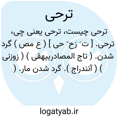ترحی. [ ت َ رَح ْ حی ] ( ع مص ) گرد شدن. ( تاج المصادربیهقی ) ( زوزنی ) ( آنندراج ). گرد شدن مار. ( منتهی الارب ) ( ناظم الاطباء ) ( از اقرب الموارد ) ( از المنجد ).