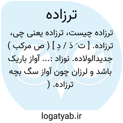 ترزاده. [ ت َ دَ / دِ ] ( ص مرکب ) جدیدالولاده. نوزاد:... آواز باریک باشد و لرزان چون آواز سگ بچه ترزاده. ( ذخیره خوارزمشاهی ).