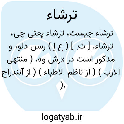 ترشاء. [ ت ِ ] ( ع اِ ) رسن دلو، و مذکور است در «رش و». ( منتهی الارب ) ( از ناظم الاطباء ) ( از آنندراج ). ریسمان دلو. ( از المنجد ) ( از اقرب الموارد ).