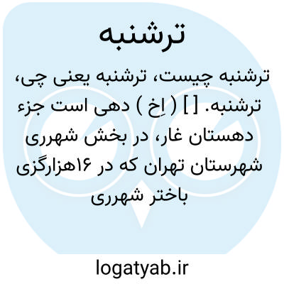 ترشنبه. [ ] ( اِخ ) دهی است جزء دهستان غار، در بخش شهرری شهرستان تهران که در 16هزارگزی باختر شهرری و 3هزارگزی شمال راه رباطکریم قرار دارد. جلگه ای است معتدل و 186 تن سکنه دارد. آب آن از قنات ورود کرج و محصول آنجا غلات و صیفی و چغندرقند و شغل اهالی کشاورزی است. راه مالرو دارد و از فیروزبهرام راه ماشین رو است. ( از فرهنگ جغرافیایی ایران ج 1 ).