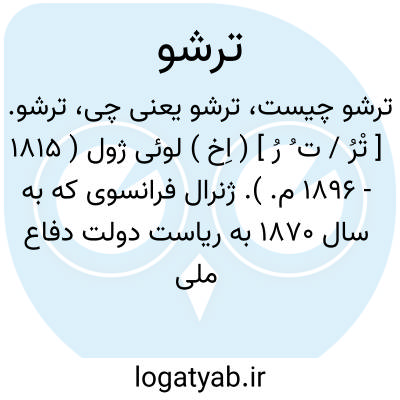 ترشو. [ تْرُ / ت ُ رُ ] ( اِخ ) لوئی ژول ( 1815 - 1896 م. ). ژنرال فرانسوی که به سال 1870 به ریاست دولت دفاع ملی رسید و چندی در پاریس فرمانروایی کرد و پیش از کاپیتولاسیون استعفا داد.