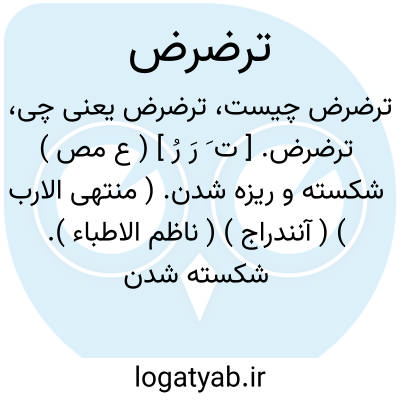 ترضرض. [ ت َ رَ رُ ] ( ع مص ) شکسته و ریزه شدن. ( منتهی الارب ) ( آنندراج ) ( ناظم الاطباء ). شکسته شدن سنگ.( از اقرب الموارد ) ( از المنجد ): الحجارة ترضرض علی وجه الارض؛ ای تتکسر. ( منتهی الارب ). || جنبیدن بی درنگ کردن. ( از اقرب الموارد ) ( از المنجد ).