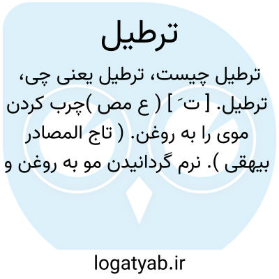 ترطیل. [ ت َ ] ( ع مص )چرب کردن موی را به روغن. ( تاج المصادر بیهقی ). نرم گردانیدن مو به روغن و شکستن و فروهشتن و گذاشتن آن. ( منتهی الارب ) ( از آنندراج ) ( ناظم الاطباء ). نرم کردن موی به روغن و گذاشتن و شانه زدن و فروهشتن آن. ( از المنجد ). نرم گردانیدن موی به روغن و شکستن و شانه زدن آن. ( از اقرب الموارد ): ما به الا تعدید الثوب وترطیل الشَّعر. ( اقرب الموارد ). || وزن کردن به رطل. ( منتهی الارب ) ( آنندراج ) ( ناظم الاطباء ).