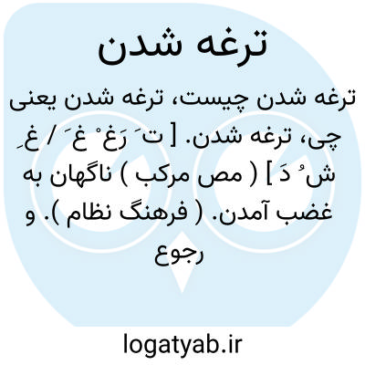 ترغه شدن. [ ت َ رَغ ْ غ َ / غ ِ ش ُ دَ ] ( مص مرکب ) ناگهان به غضب آمدن. ( فرهنگ نظام ). و رجوع به ترقه شود.