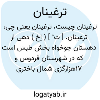 ترغینان. [ ت ُ ] ( اِخ ) دهی از دهستان جوخواه بخش طبس است که در شهرستان فردوس و 17هزارگزی شمال باختری طبس، بر سر راه شوسه عمومی طبس به یزد قرار دارد. جلگه ای گرمسیر است و 159 تن سکنه دارد. آب آن ازقنات و محصول آن غله و خرما و گاورس و پنبه است و راه ماشین رو دارد. ( از فرهنگ جغرافیایی ایران ج 9 ).