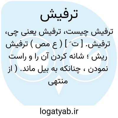 ترفیش. [ ت َ ] ( ع مص ) ترفیش ریش؛ شانه کردن آن را و راست نمودن، چنانکه به بیل ماند. ( از منتهی الارب ) ( از ناظم الاطباء ) ( از آنندراج ) ( از اقرب الموارد ) ( از المنجد ).
