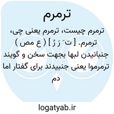 ترمرم. [ ت َ رَ رُ ] ( ع مص ) جنبانیدن لبها بجهت سخن و گویند ترمرموا یعنی جنبیدند برای گفتار اما دم نزدند. ( منتهی الارب ) ( از آنندراج ). جنبانیدن لبها جهت تکلم. ( ناظم الاطباء ). حرکت دادن لبان برای سخن گفتن و تکلم نکردن. ( از اقرب الموارد ) ( از المنجد ).