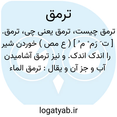 ترمق. [ ت َ رَم ْ م ُ ] ( ع مص ) خوردن شیر را اندک اندک. و نیز ترمق آشامیدن آب و جز آن و یقال: ترمق الماء اذا حساه حسوة بعد حسوة. ( منتهی الارب ) ( آنندراج ) ( از ناظم الاطباء ) ( از متن اللغة ) ( از المنجد ) ( از اقرب الموارد ).