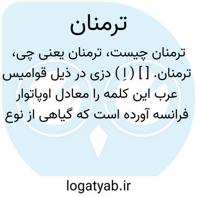 ترمنان. [ ] ( اِ ) دزی در ذیل قوامیس عرب این کلمه را معادل اوپاتوار فرانسه آورده است که گیاهی از نوع کمپوزاسه و از رسته شاهدانه آبی است. ( از دزی ج 1 ص 146 ).